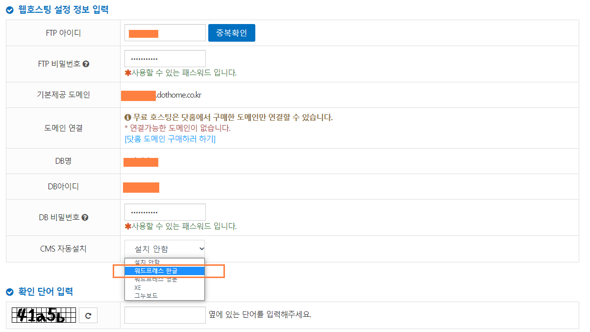 그럼 설치를 해줘야겠죠. 다시 닷홈 홈페이지로 이동합니다.