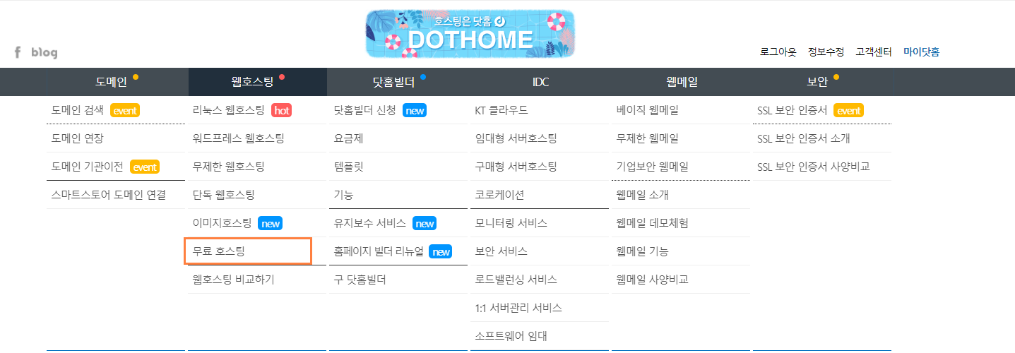 닷홈은 도메인, 무료 웹호스팅, 웹빌더, 메일호스팅, SSL보안인증서, 서버호스팅, 코로케이션 등 다양한 호스팅 서비스를 제공하고 있습니다.