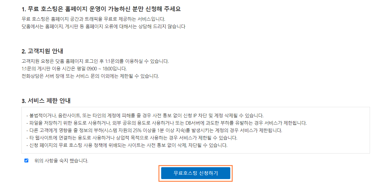 자, 회원가입 하셨으면 이젠 호스팅, 우리가 원하는 무료호스팅 신청을 해야 합니다.