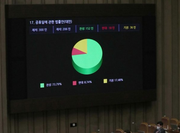 종전 설, 추석연휴와 어린이날에만 적용되던 대체공휴일의 확대로 총 7일로 늘어나게 되었습니다. 또한 필요시엔 정부가 국무회의를 거쳐 임시 공휴일을 지정 할 수 있도록 명확하게 마련하였습니다.