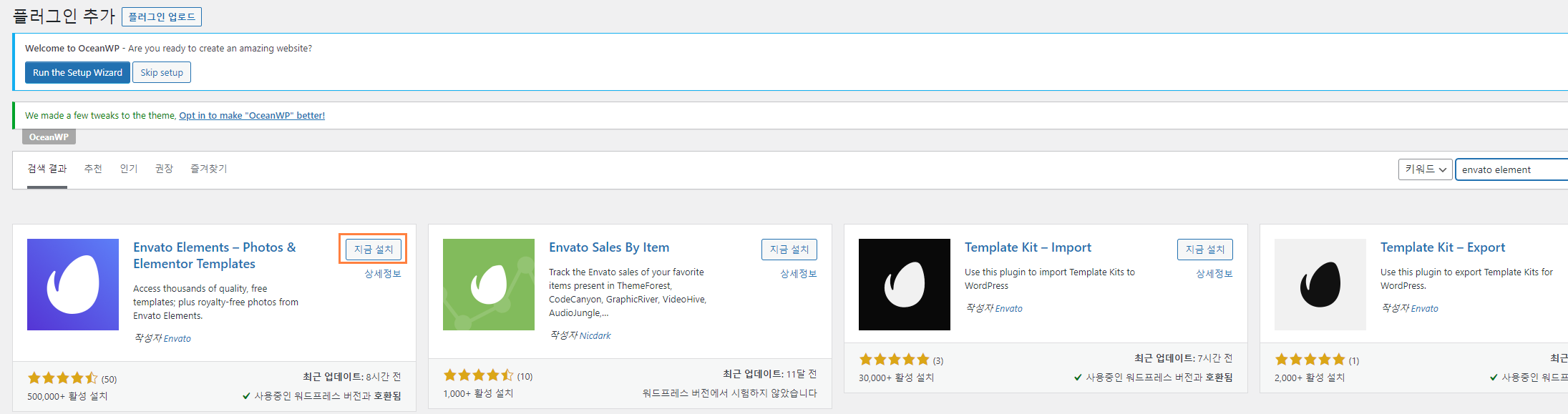 다음단계는 envato element 라는 plugin을 추가로 설치 하는것 입니다.
