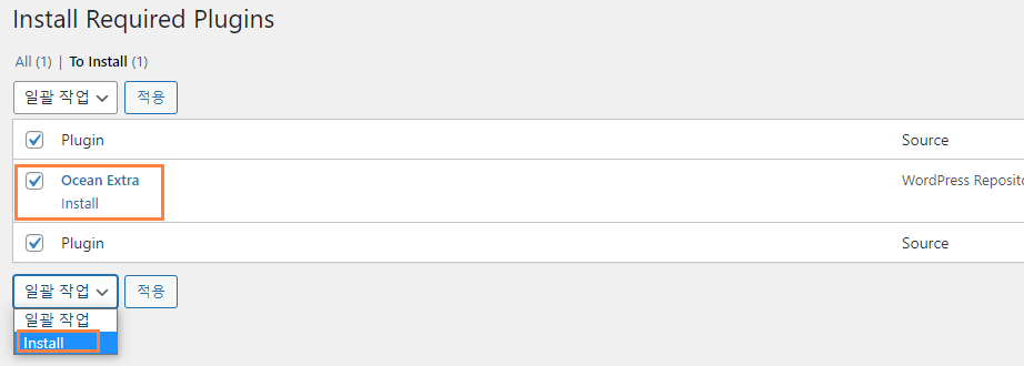 지금 설정한 테마를 사용 하시려면, Ocean Extra 라는 plugin을 설치해야 한다는거죠.