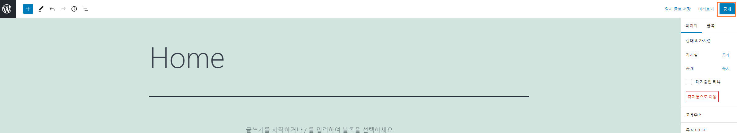 워드프레스 페이지 추가 하여 새로운 홈페이지 만들기 #03