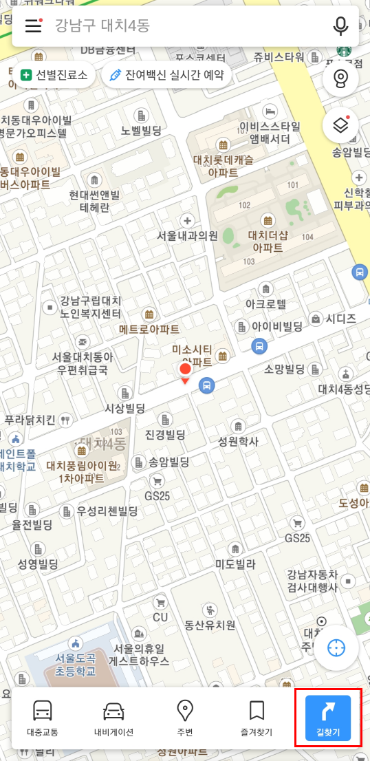 그럼 위와 같은 화면이 나오죠? 위에서 길찾기 버튼을 눌러줍니다.