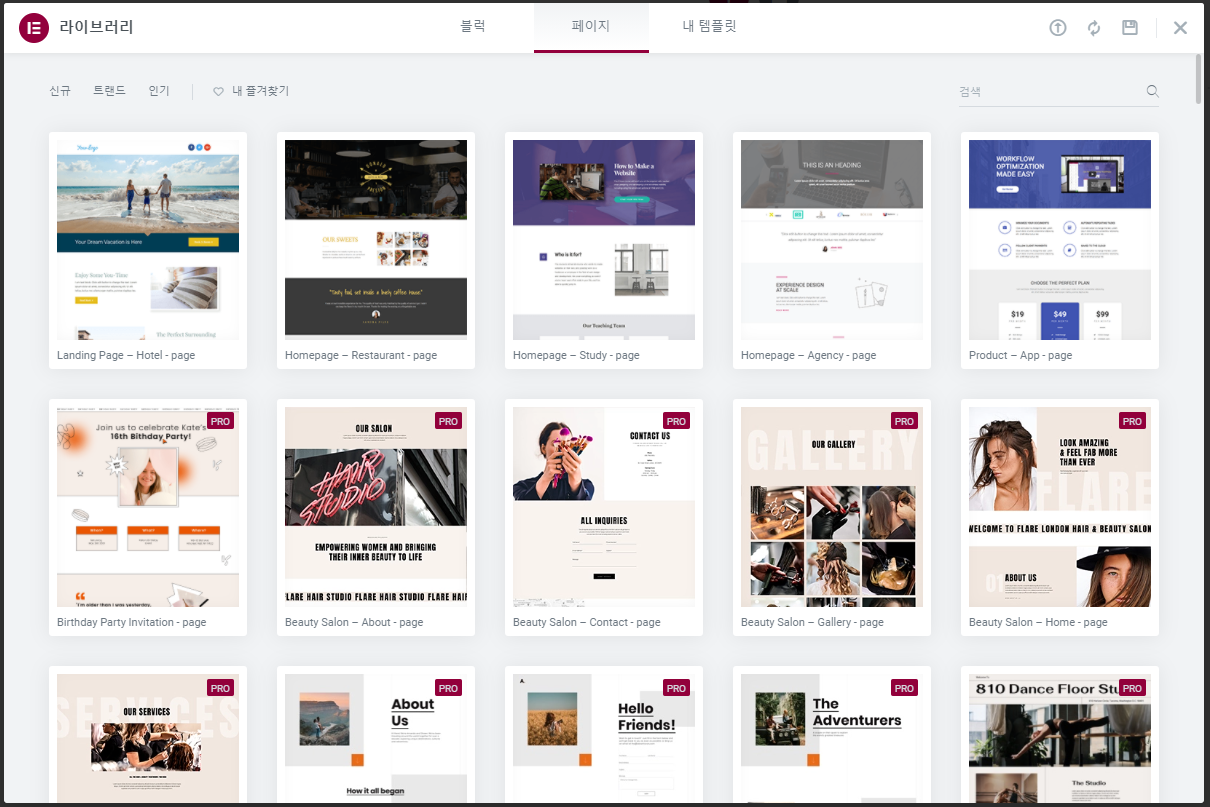 엘리멘터 페이지 빌더 템플릿 사용하기