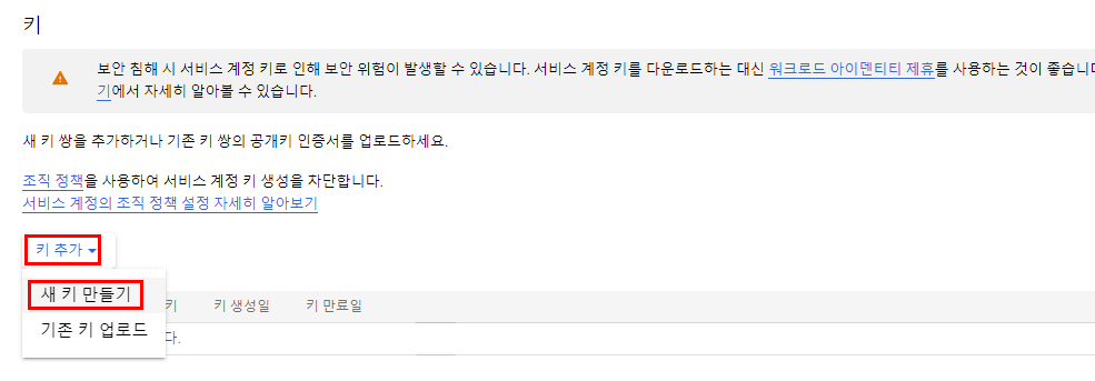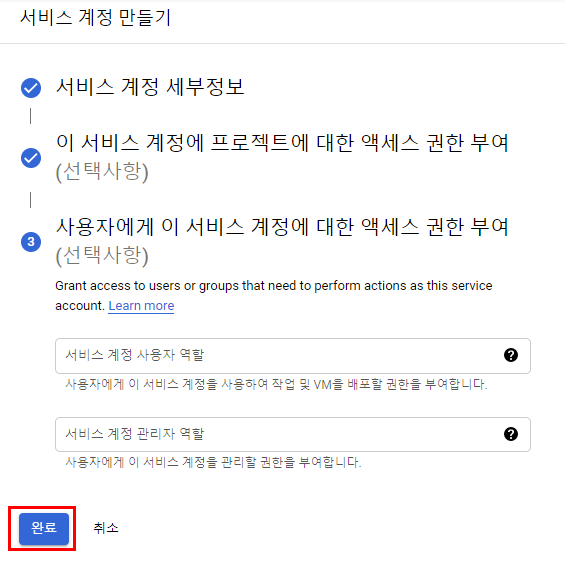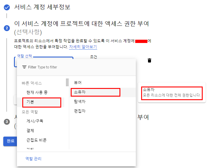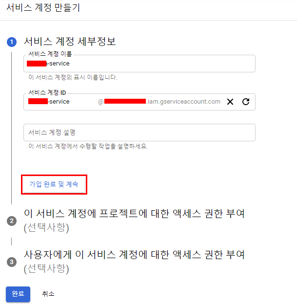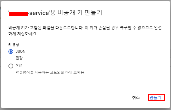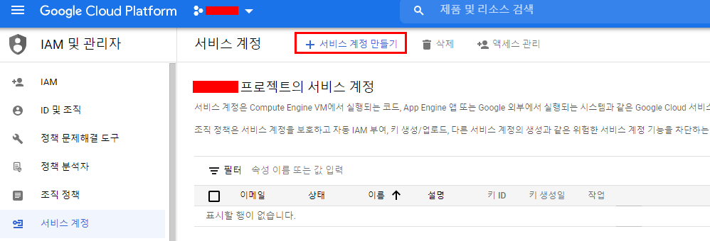다음 링크로가서 서비스 계정을 생성 해주세요.