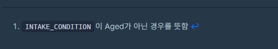 INTAKE_CONDITION이 Aged가 아닌 경우를 뜻 한다고 합니다.