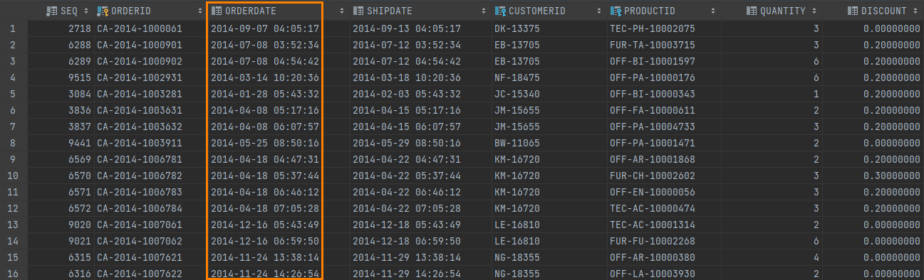 그 기준으로 우선 ORDERDATE 컬럼을 사용 하도록 하겠습니다.