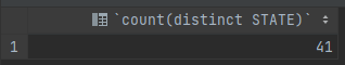 여러분들이 count에 대해서는 잘 아실겁니다. 그 안에 distinct를 사용하여 STATE값에서 중복을 제거하고 count를 할 수 있습니다.