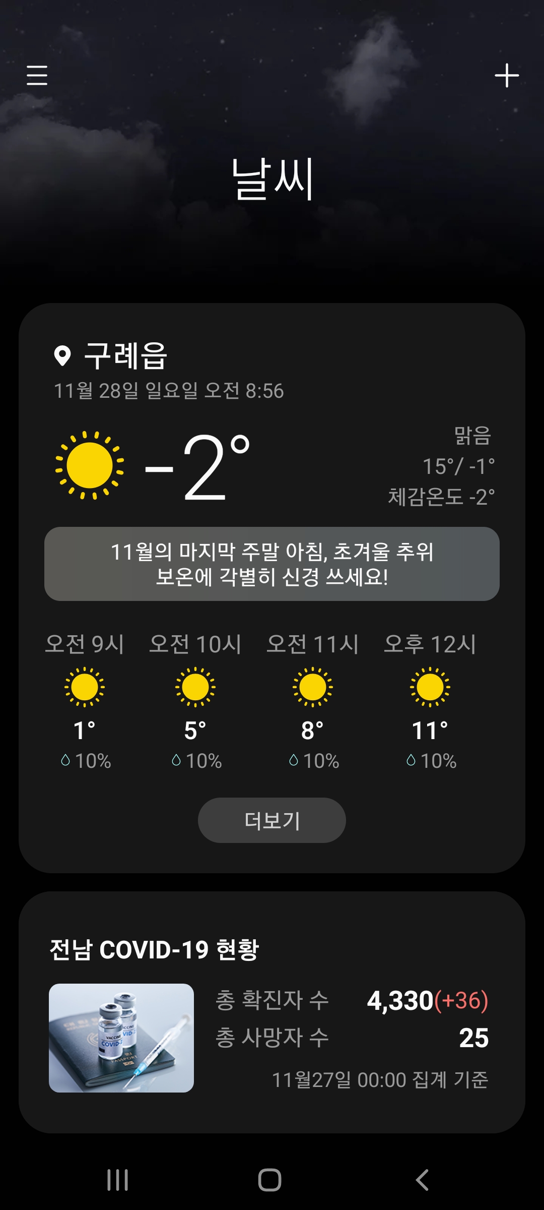 아침에 눈을 뜨고보니 날씨가 어제 보다 더 추운것 같더군요.