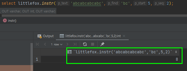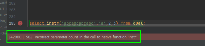 사용시 주의 사항은, 오라클 같은 경우에는 파라미터로 0이나 음수가 오면 에러가 나지만, 여기에서는 -1이 출력된다는 점 입니다. 그외 나머지 찾는 문자열이 없을때는 0을 리턴하는등의 내용은 동일 합니다.