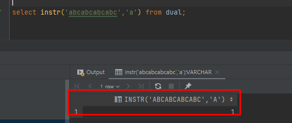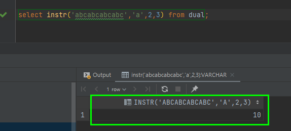 이렇게 빨간박스에서 처럼 처음 a를 제외한 b부터 (2번째자리) a라는 문자를 찾는데 세번째 있는걸 찾으라는 의미인것 이죠. 그래서 오라클에서 위와 같이 실행을 하면 다음과 같은 결과가 나오게 됩니다.