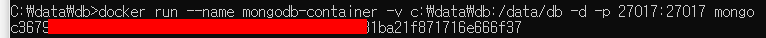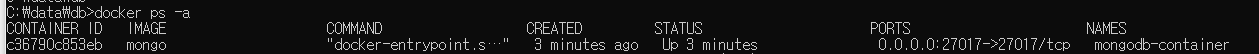 docker run --name mongodb-container -v c:\data\db:/data/db -d -p 27017:27017 mongo