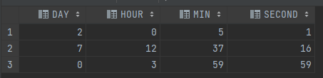 자, 그럼 위 데이터를 이용해서 각 일, 시, 분, 초 간격을 출력 해보겠습니다.