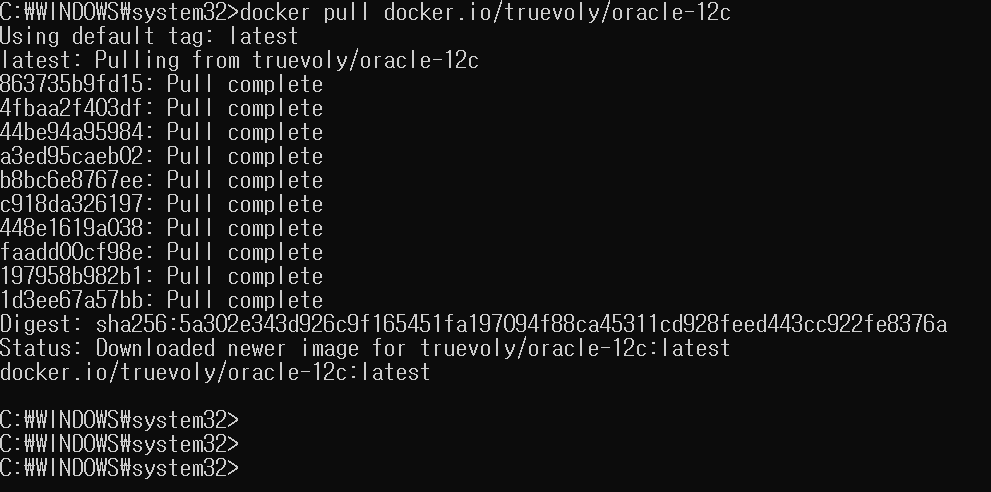 이렇게 버전이 잘 뜨면 설치가 잘 된거에요. 그럼 이젠 도커에 오라클을 먼저 설치 해보도록 하겠습니다. 오라클은 12c버전을 설치 할 겁니다.