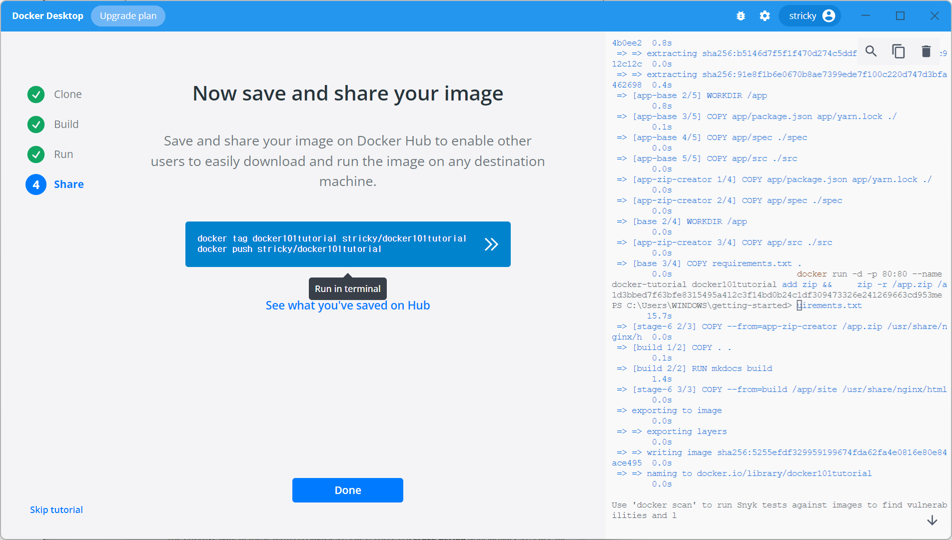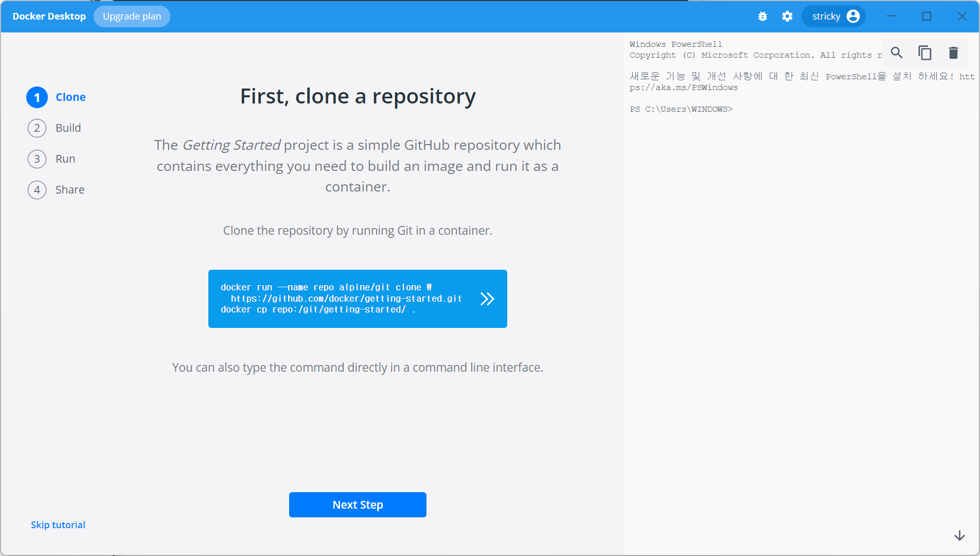 설치과정은 생각보단 좀 오래 걸리는편입니다. (제 컴퓨터가 느릴지도.. ㅎㅎ) 아무튼 과정이라는 말이 무색할 정도로 간단하게 설치는 종료가 됩니다. 그리고 도커를 실행해 보세요. 그럼 회원가입 및 로그인을 해주시고, repository 설정을 위해서 몇가지 커맨드를 실행하게 됩니다. 그냥 클릭만 하면 끝나는 거닌깐 위 그림들을 보고 잘 따라해 주세요.