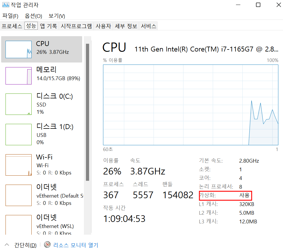 도커를 설치하기 전에 몇가지 설정 확인이 필요 합니다. 특히 윈도우의 경우 정품인증이 되어 있는 Pro, Enterprise 이상 버전을 쓰셔야 하고, CPU 가상화가 사용되는 제품이여야 하는데, 최근에 나온 대부분의 제품은 가능 합니다.