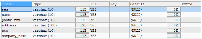 시작, column_test를 할 테이블의 구조는 아래와 같습니다.