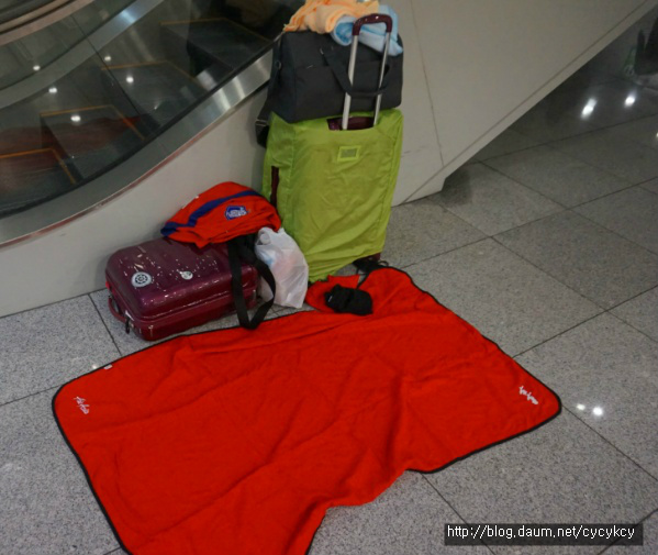 하지만 십여분이나 흘렀을까? 공항 보안 직원이 오더니 에스컬레이터 옆은 위험하여 노숙이 허락되지