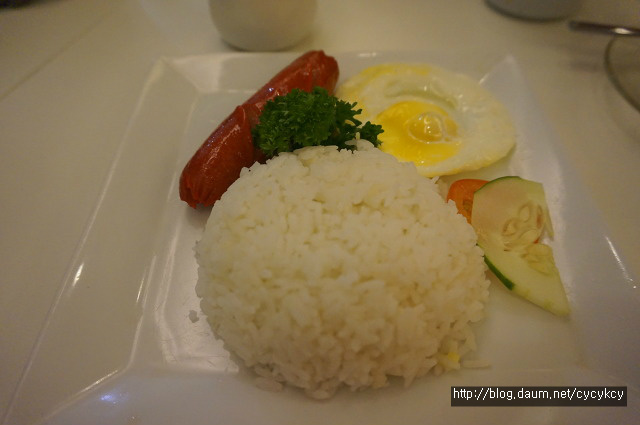 밥과 계란 프라이야 별로 다를 게 없는 동남아 스타일 맛이었으나, 함께 나온 소시지는..