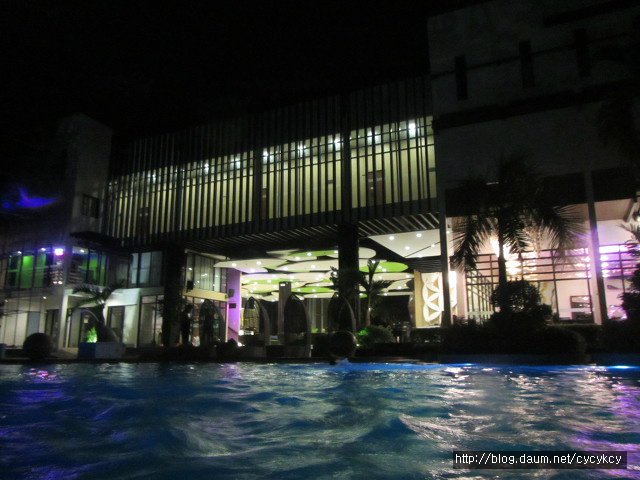 사방이 조용한 가운데, 잔잔한 음악이 흐르고, 둘뿐이 호텔 수영장.