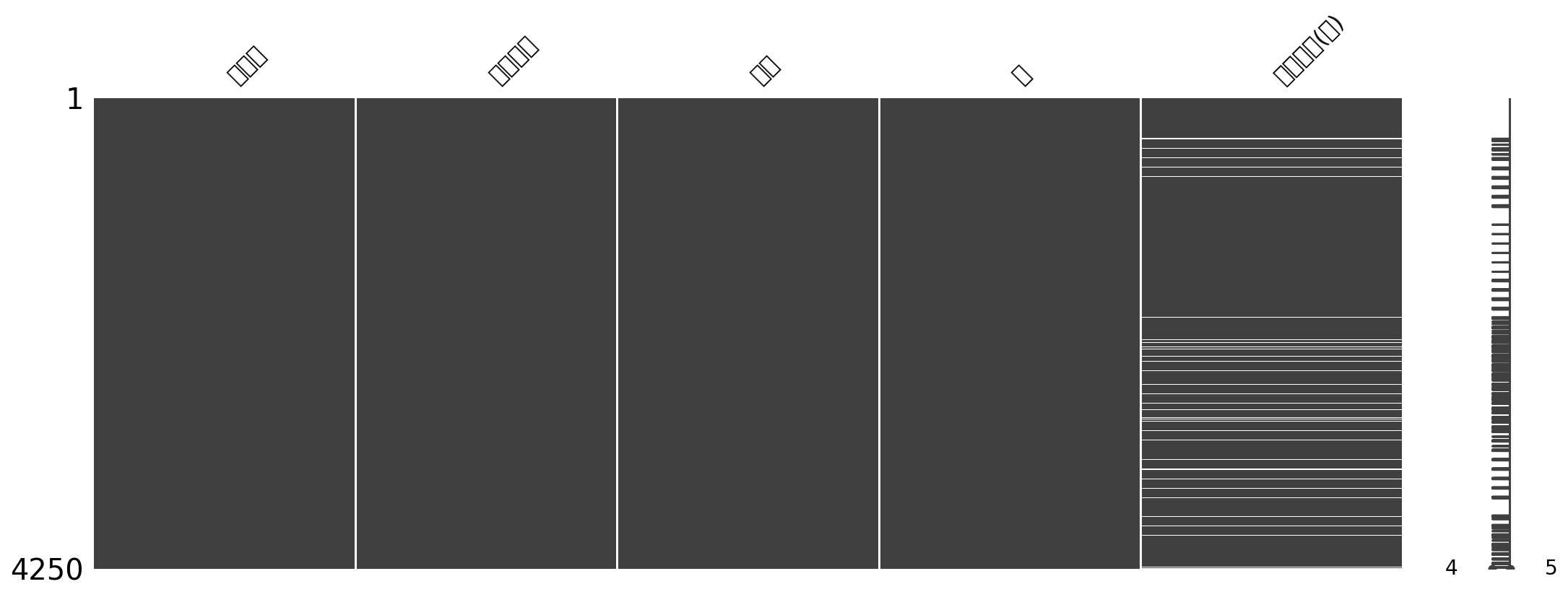그래프 상으로 비어 있는 부분이 데이터 값이 없는 결측치 부분입니다.